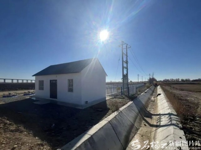 这块农田是昌吉市2024年高标准农田建设项目,于今年4月完工并使用。项目建设有沉砂池、田间阀门井、虫情监测、墒情监测、小型气象站等设备,种植户田间浇水、施肥等直接使用手机操作,省时省力又省成本。